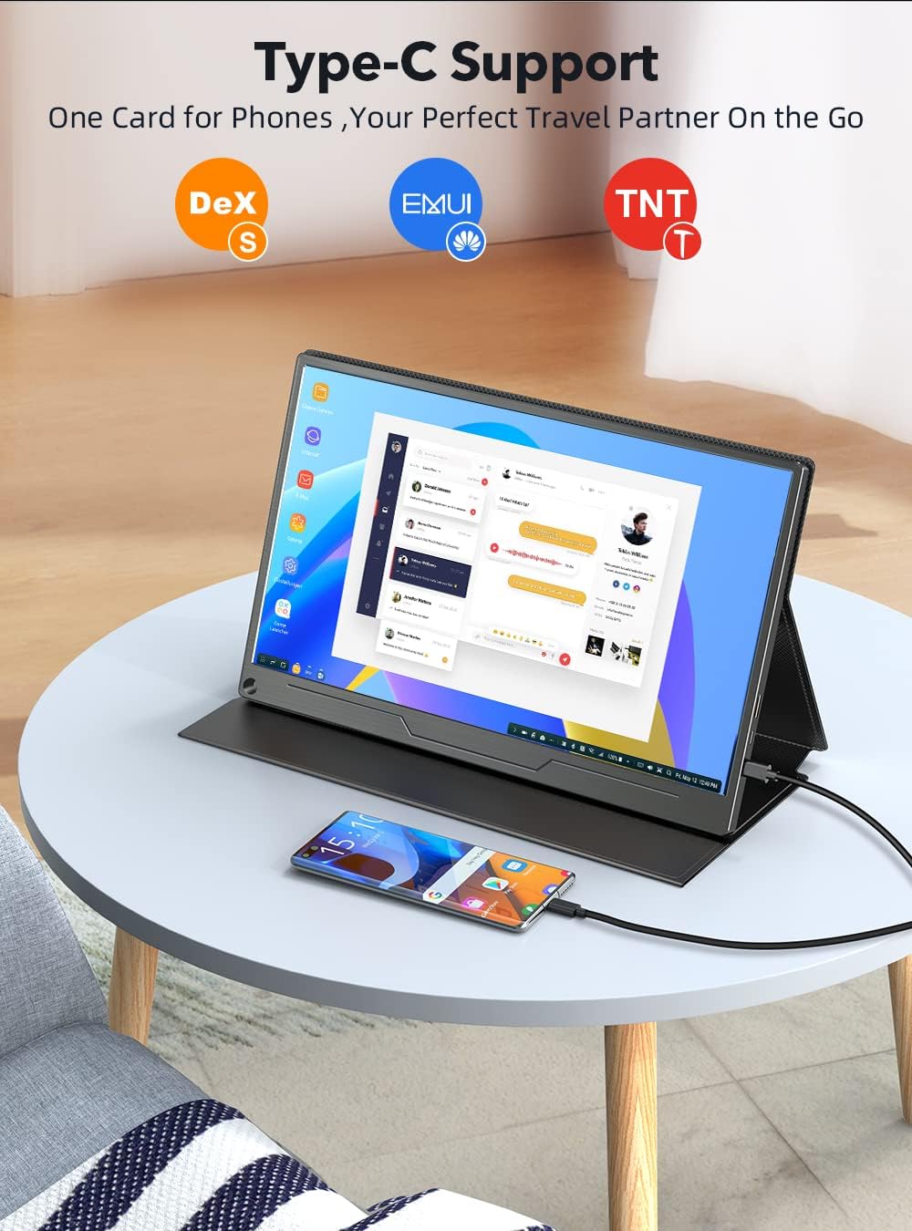 [Single Type-C Connect to Signal & Power]: NEWSOUL portable display features an innovative hybrid-signal solution with integrated a 3-in-1 function Type-C interface for simultaneous power, signal transmission and USB interface functions.